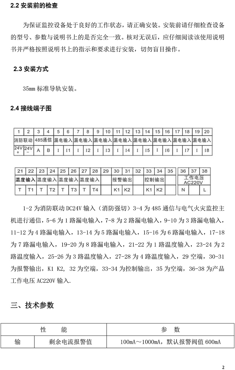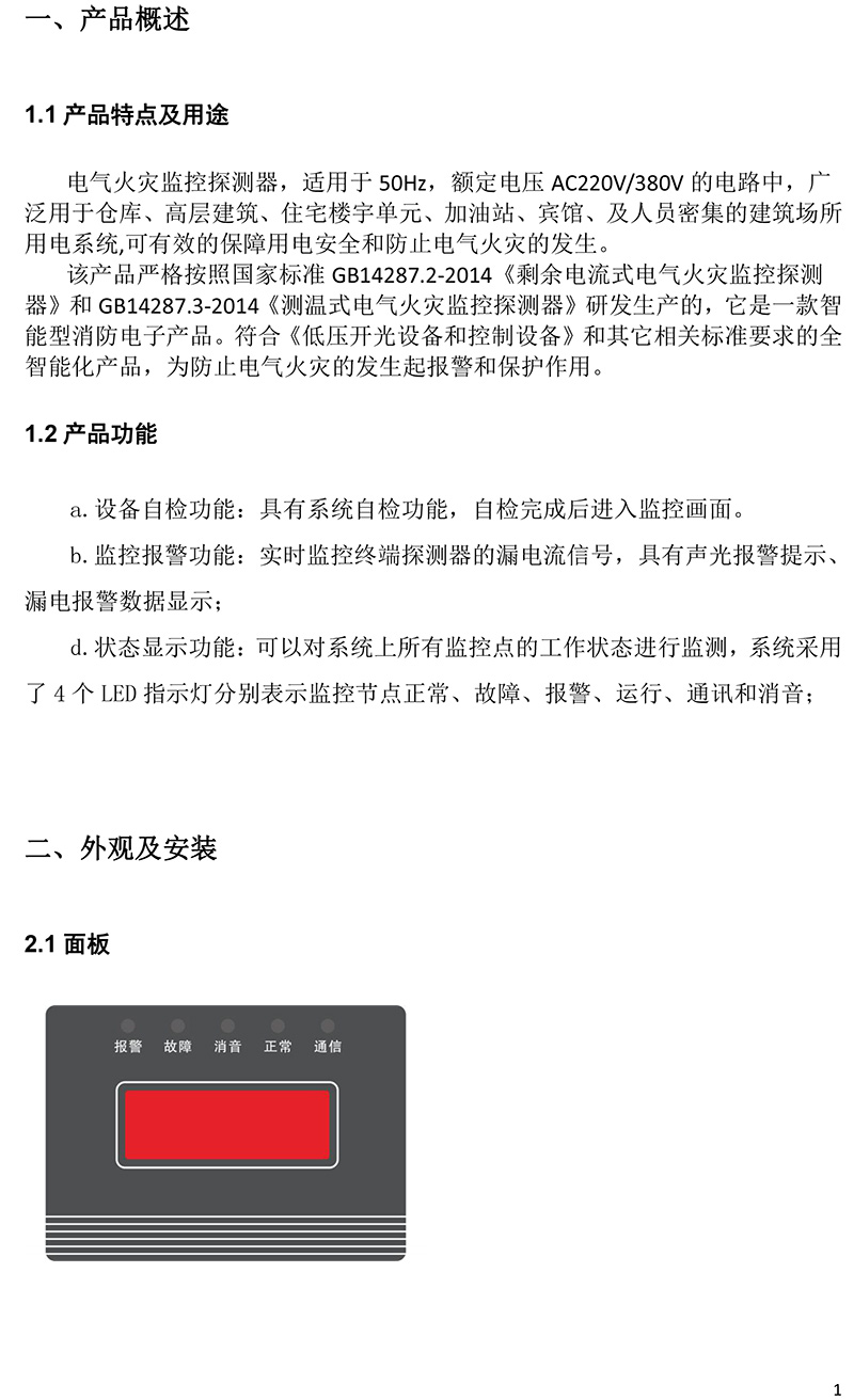 火災1路 電氣火災探測器說明書