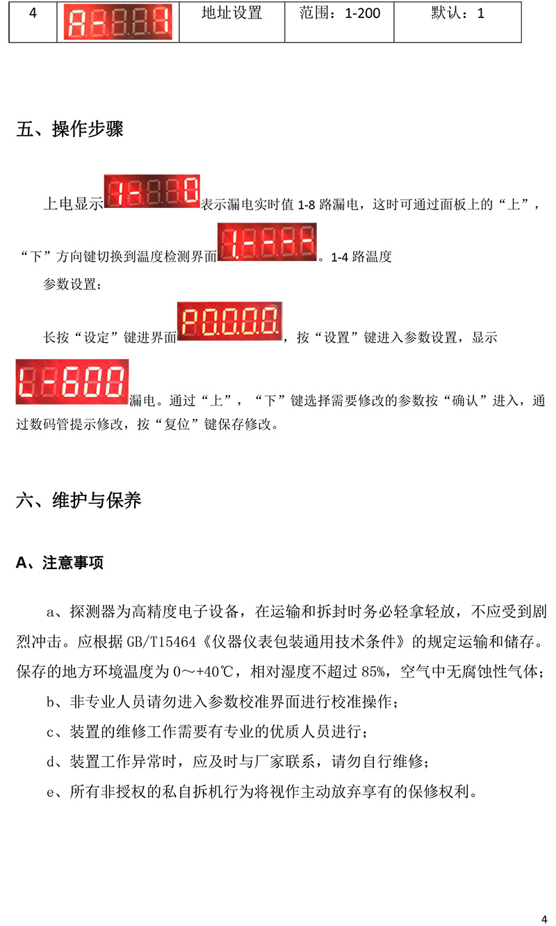 面板式火災8路 電氣火災探測器說明書